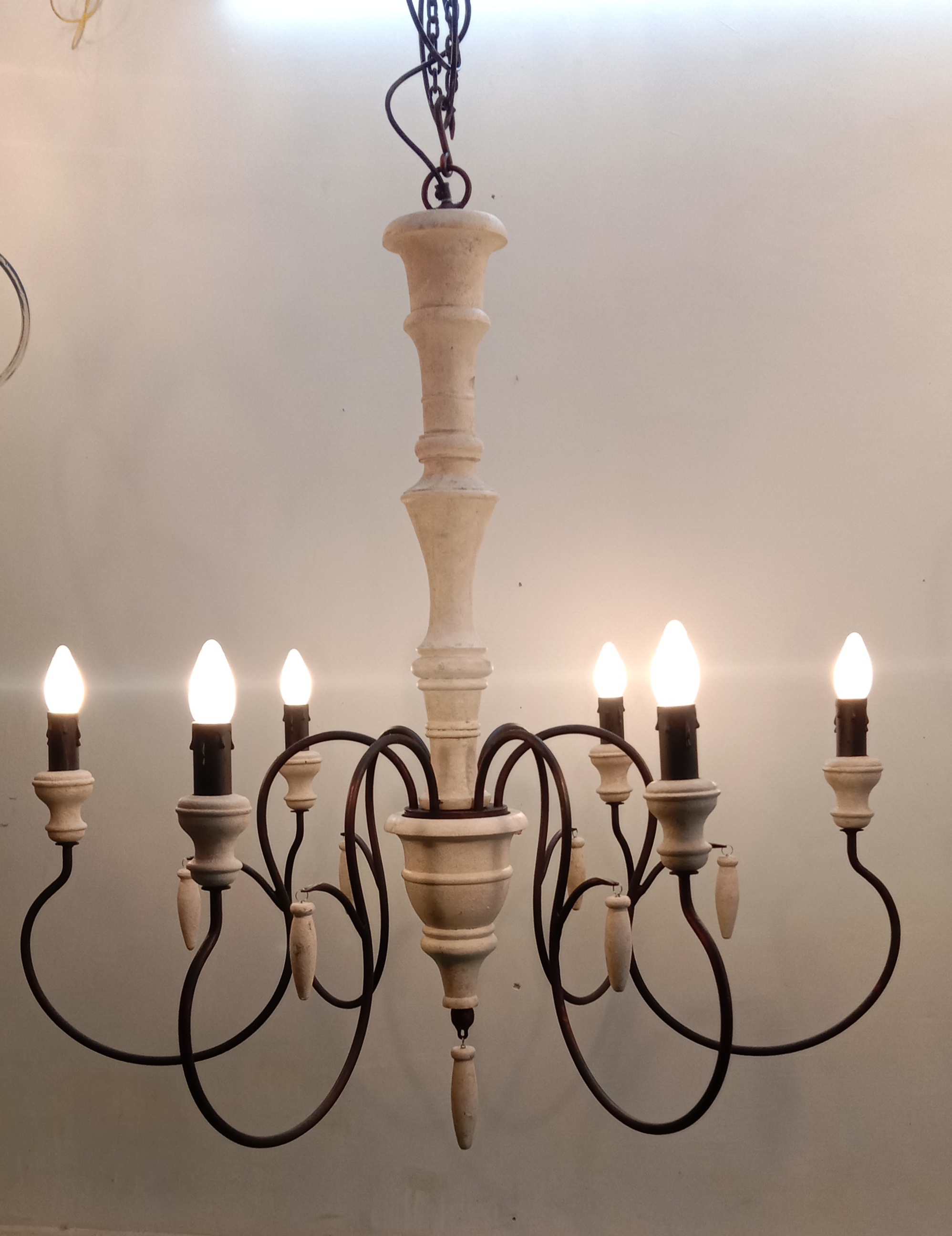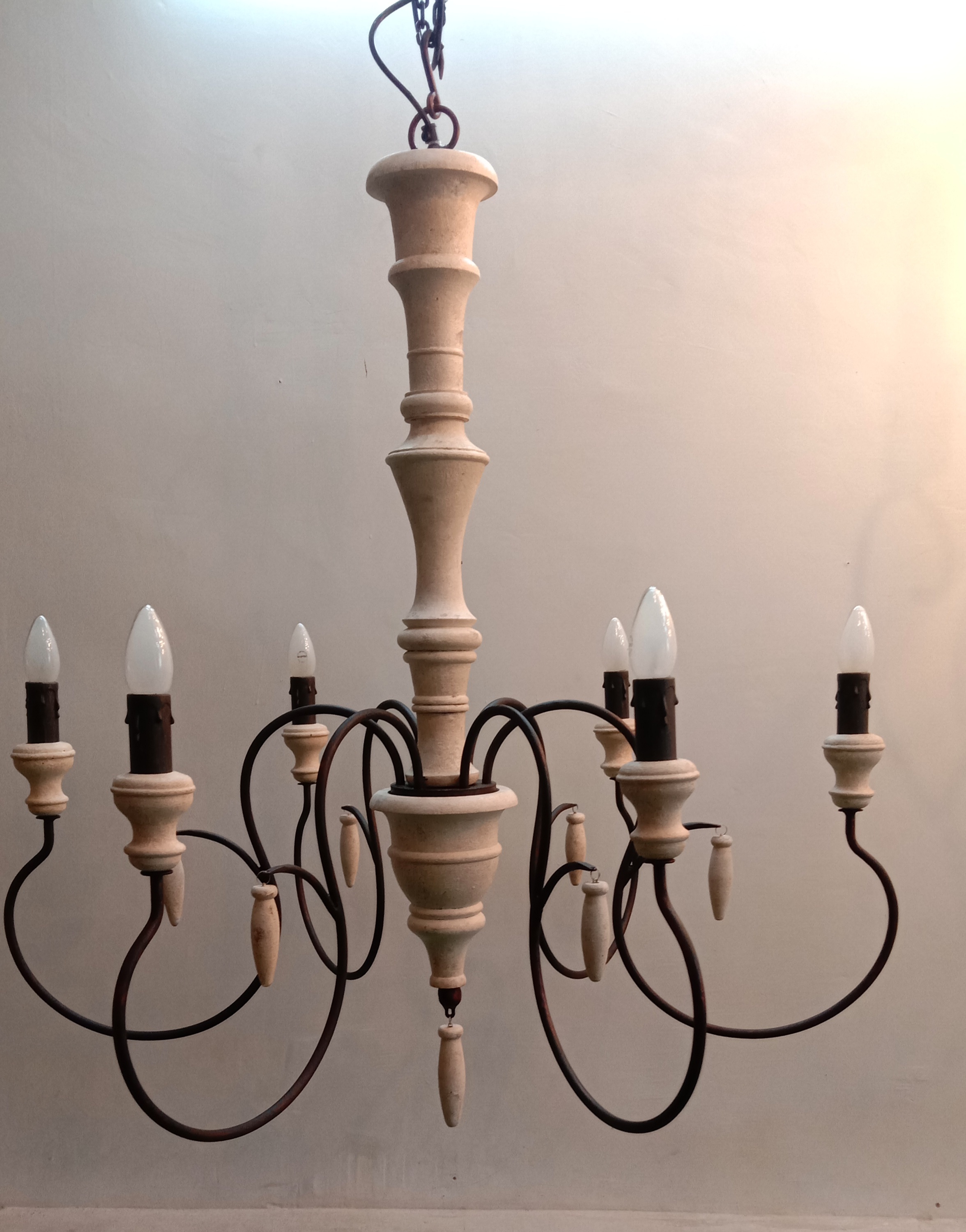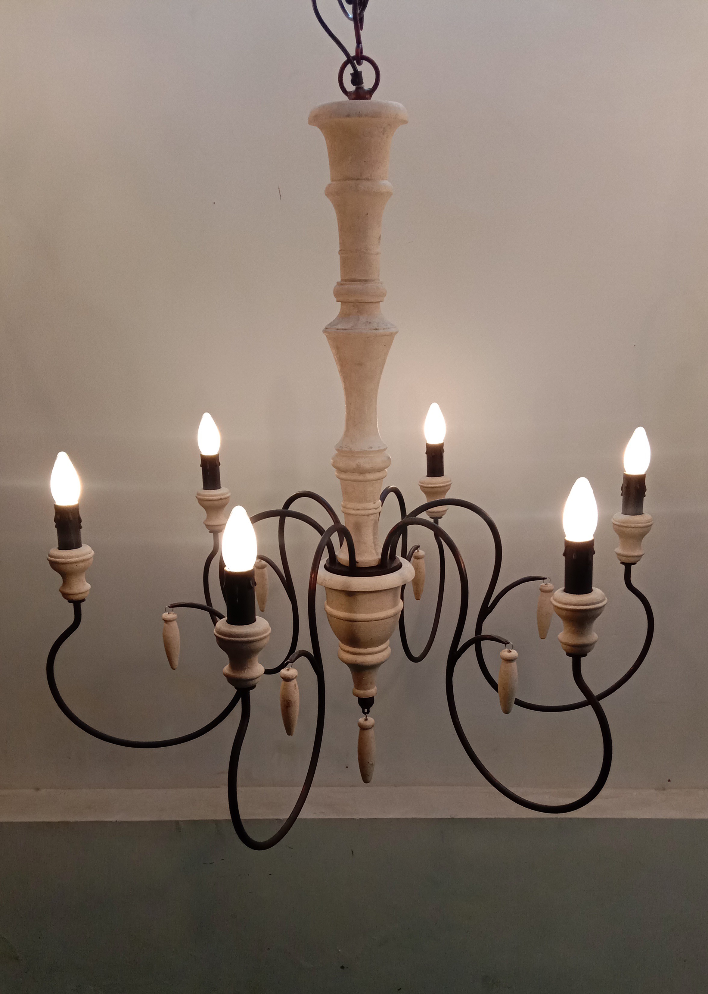 This beautiful chandelier with 6 bulb holders, created from a rich combination of wood and metal will enhance the beauty of your space.