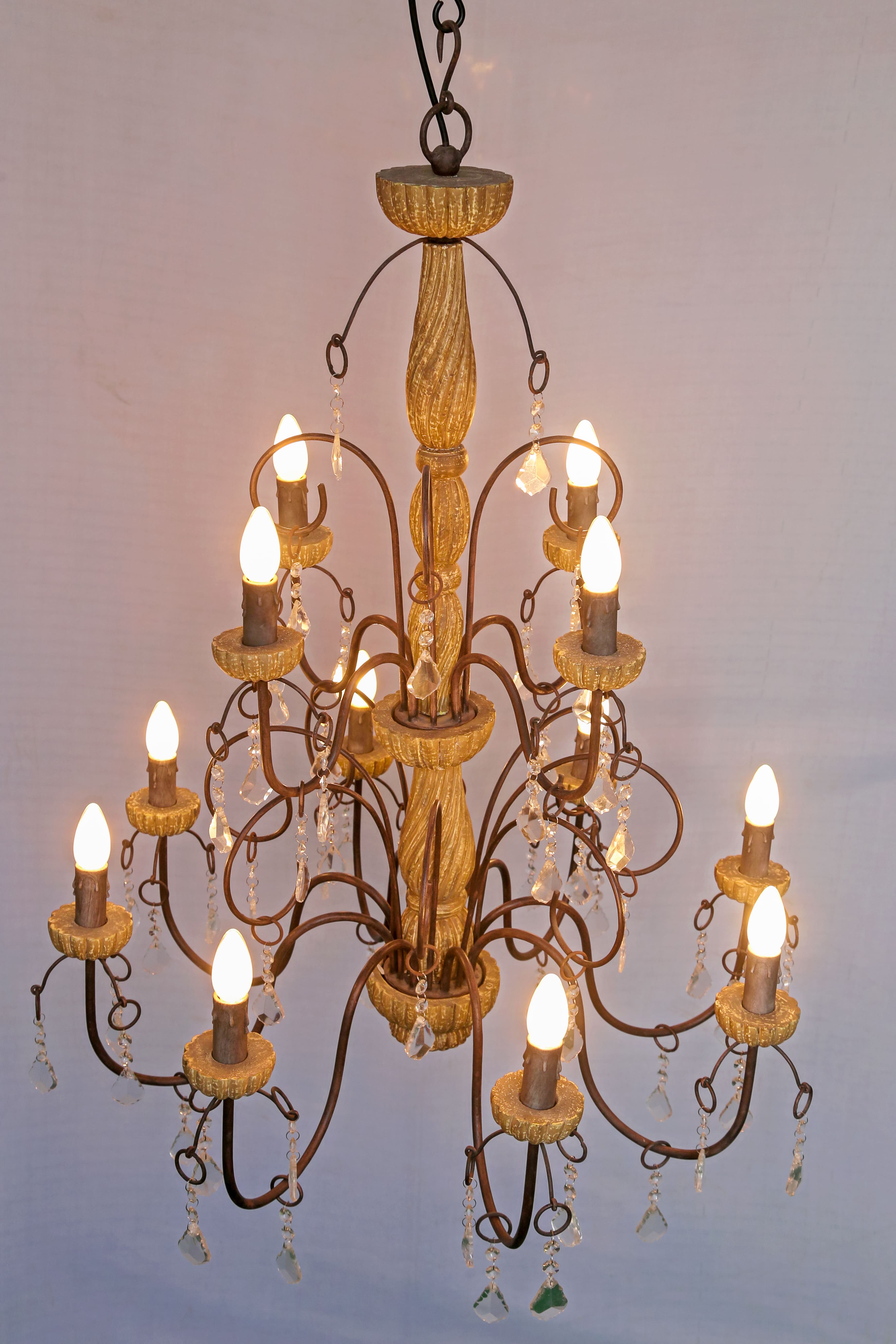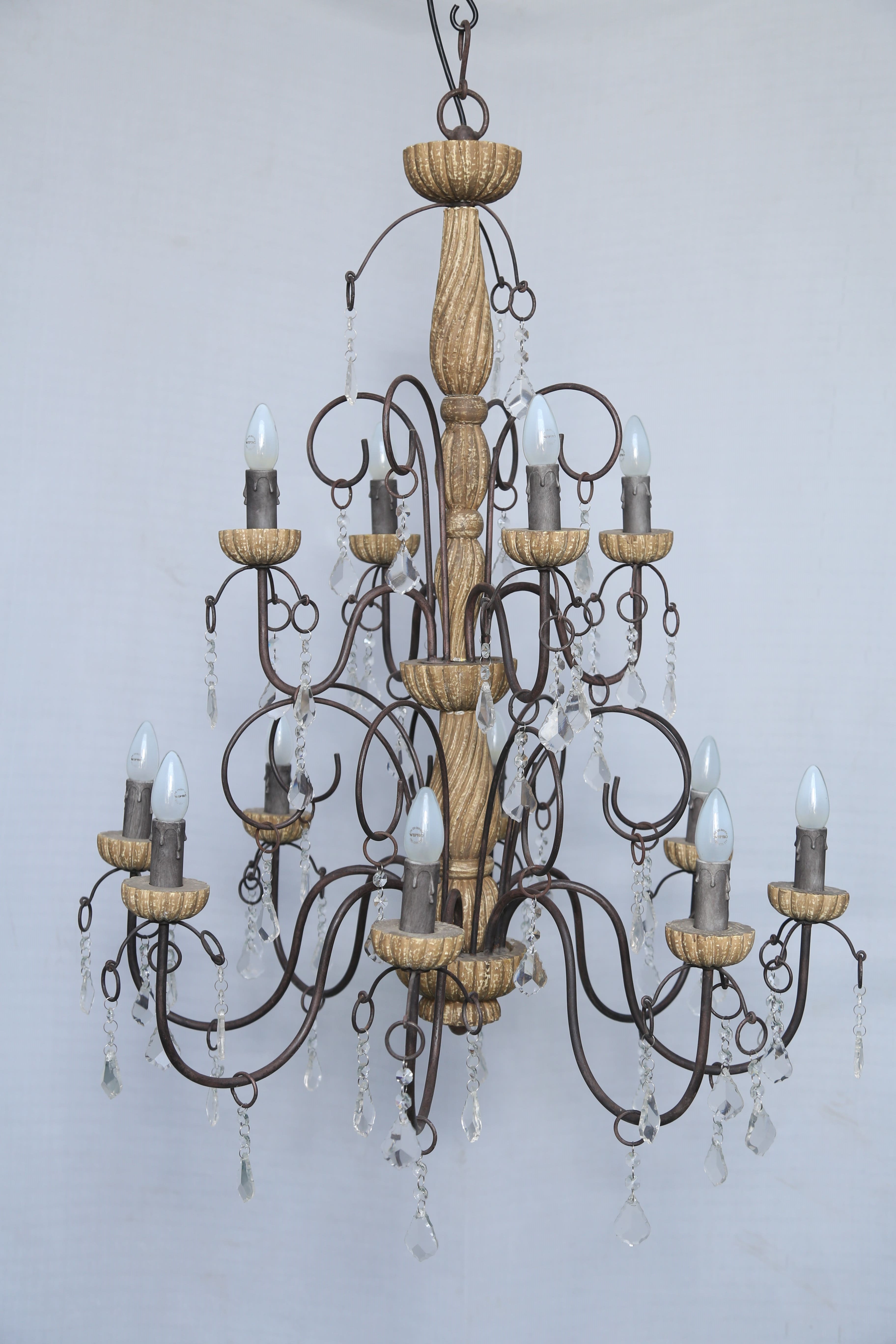 This beautiful chandelier with 12 bulb holders, created from a rich of Antique Finishing metal & wood will enhance the beauty of your space.