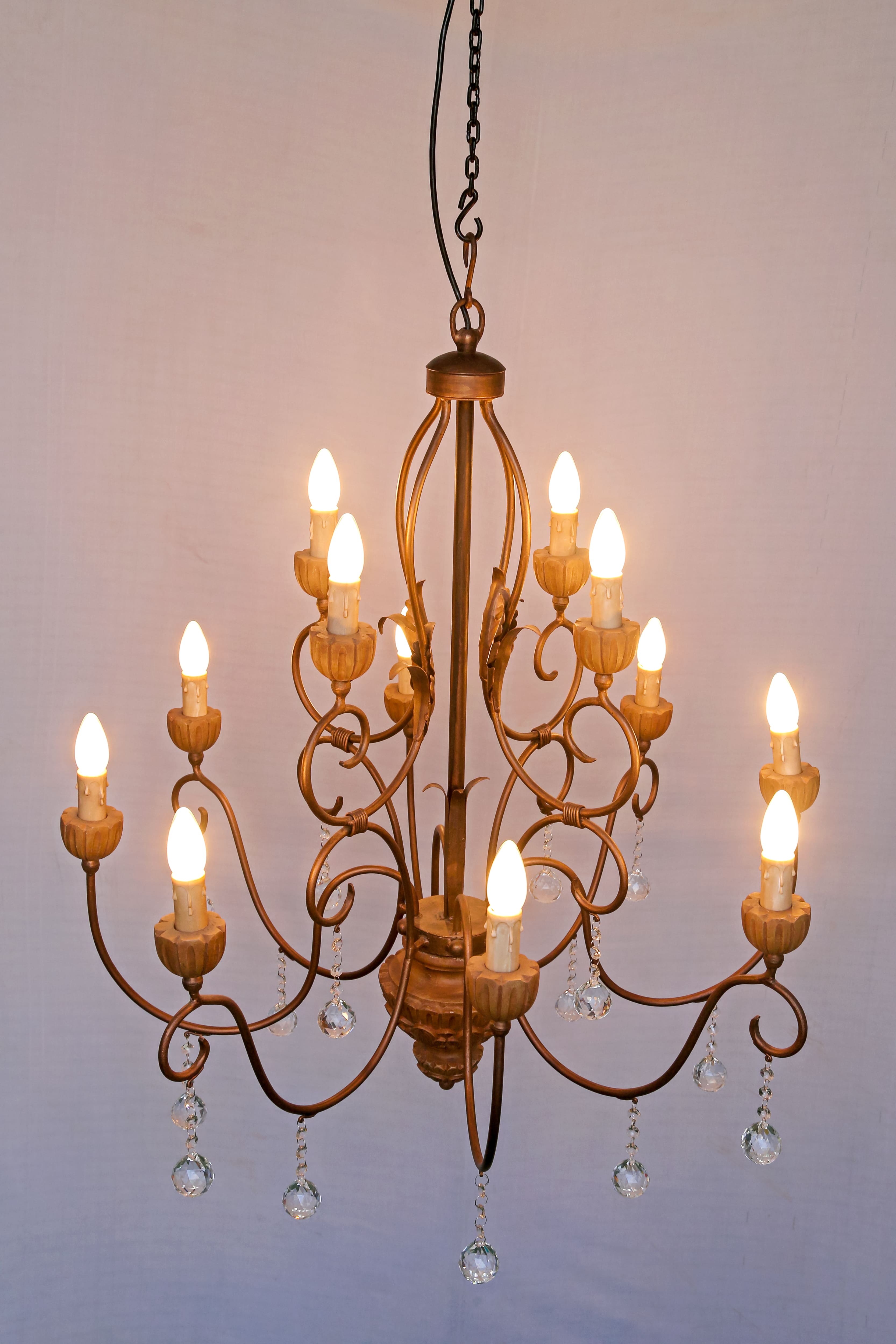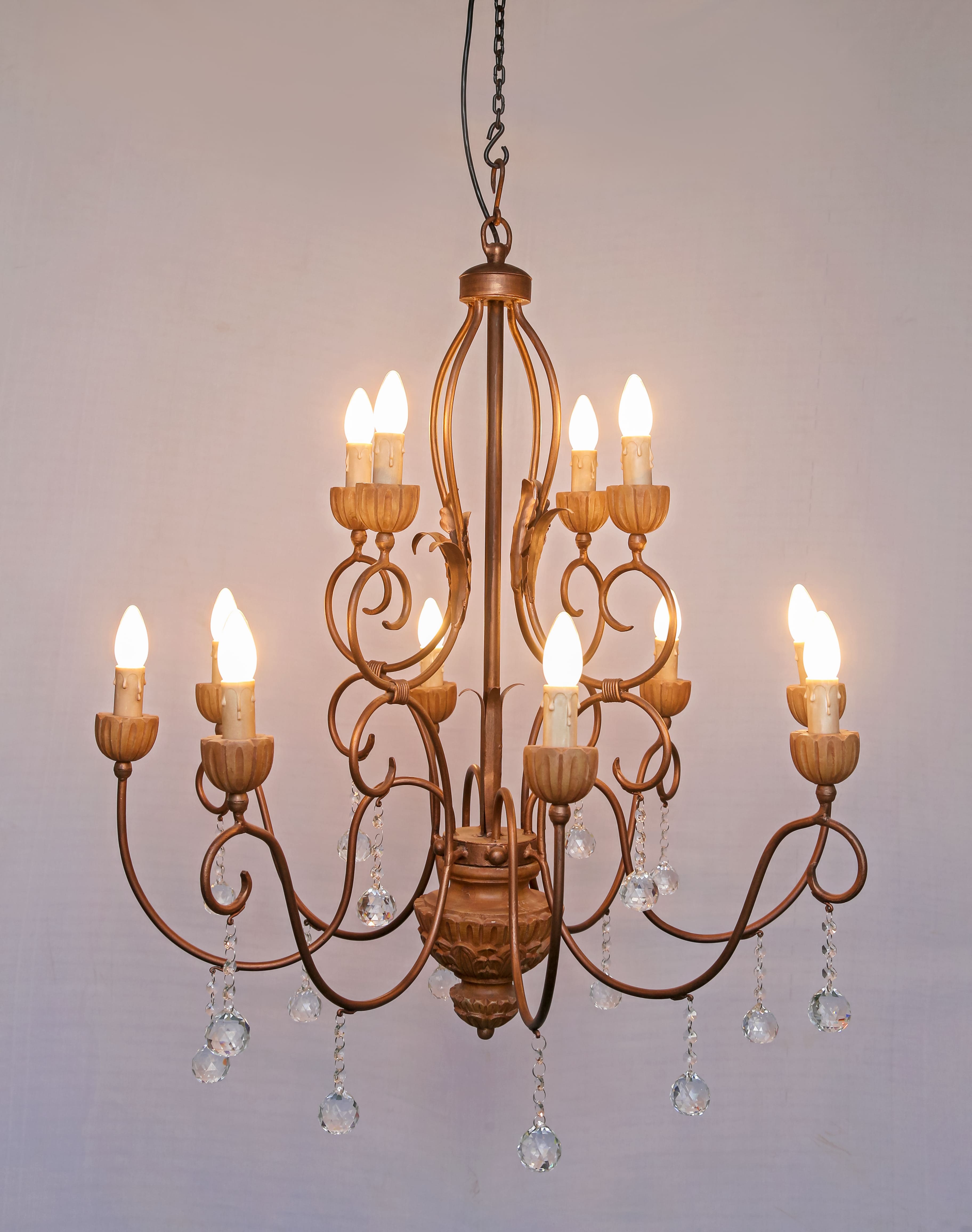 The dual tone design lends a classical feel to this chandelier. The ornate metal design further adds elegance to this hanging light.
