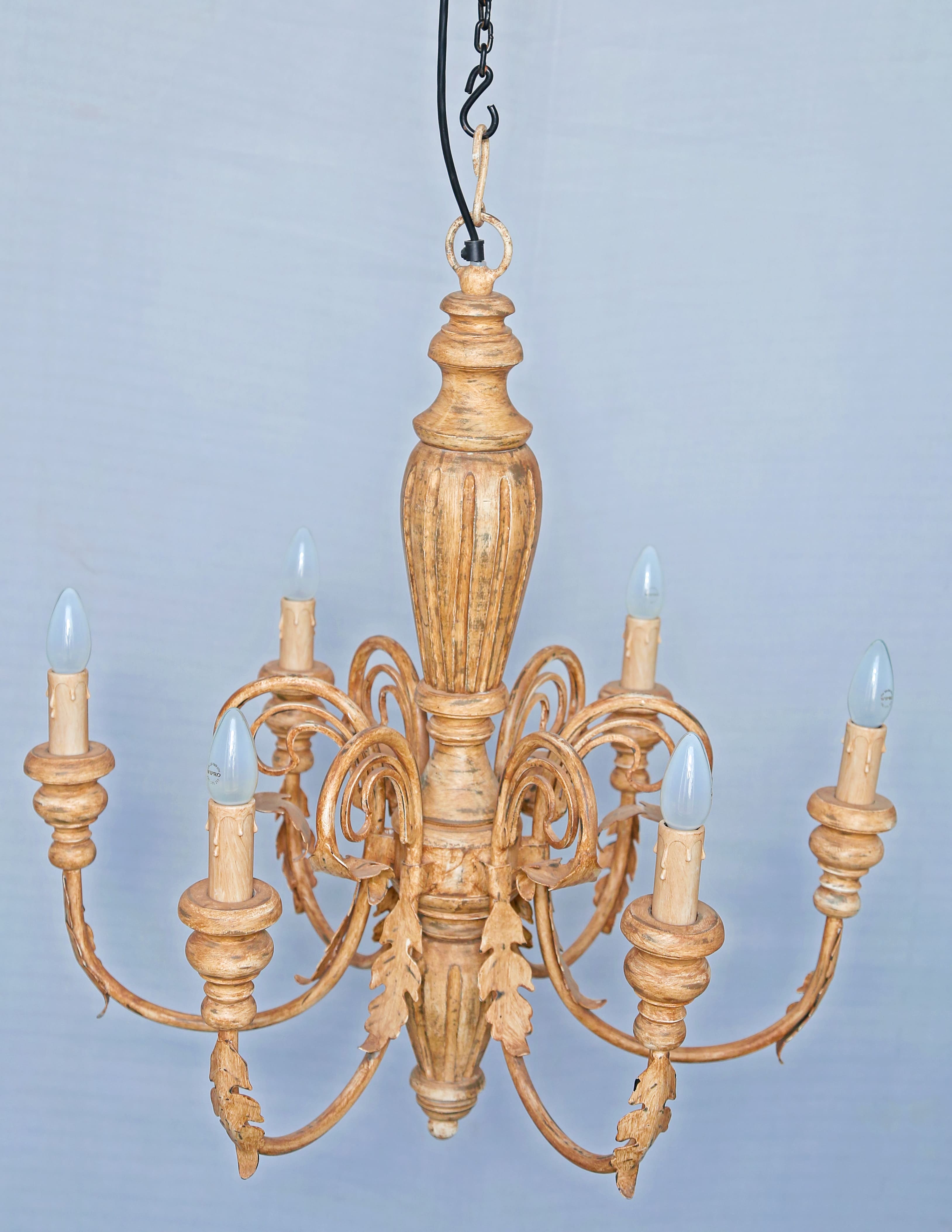 Brimming with farmhouse character, this candle-style rustic chandelier brings a hint of Provencal style to any space in your home. Distressed Wood and drape rust scrolling arms to give a timeless, elegant boost.