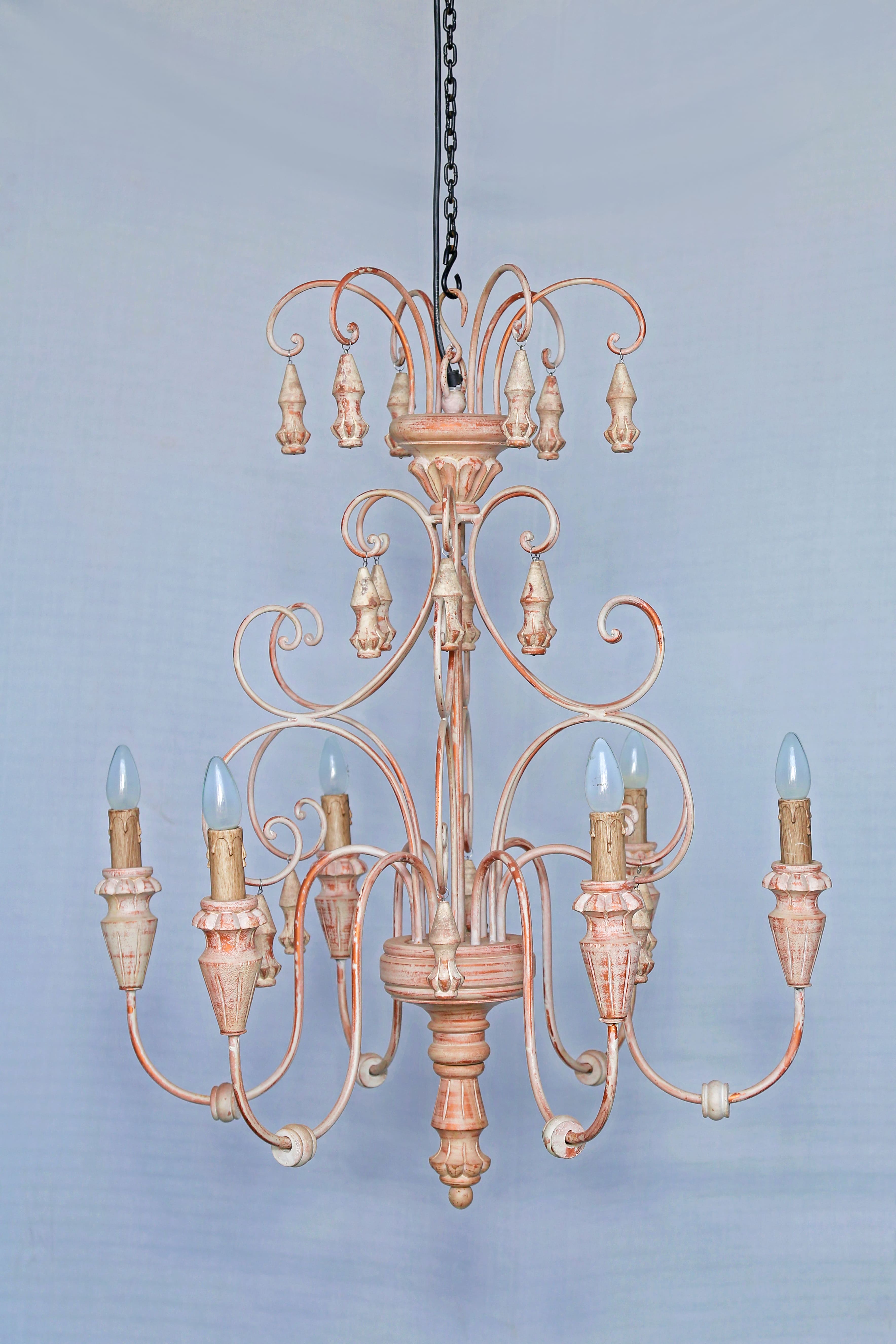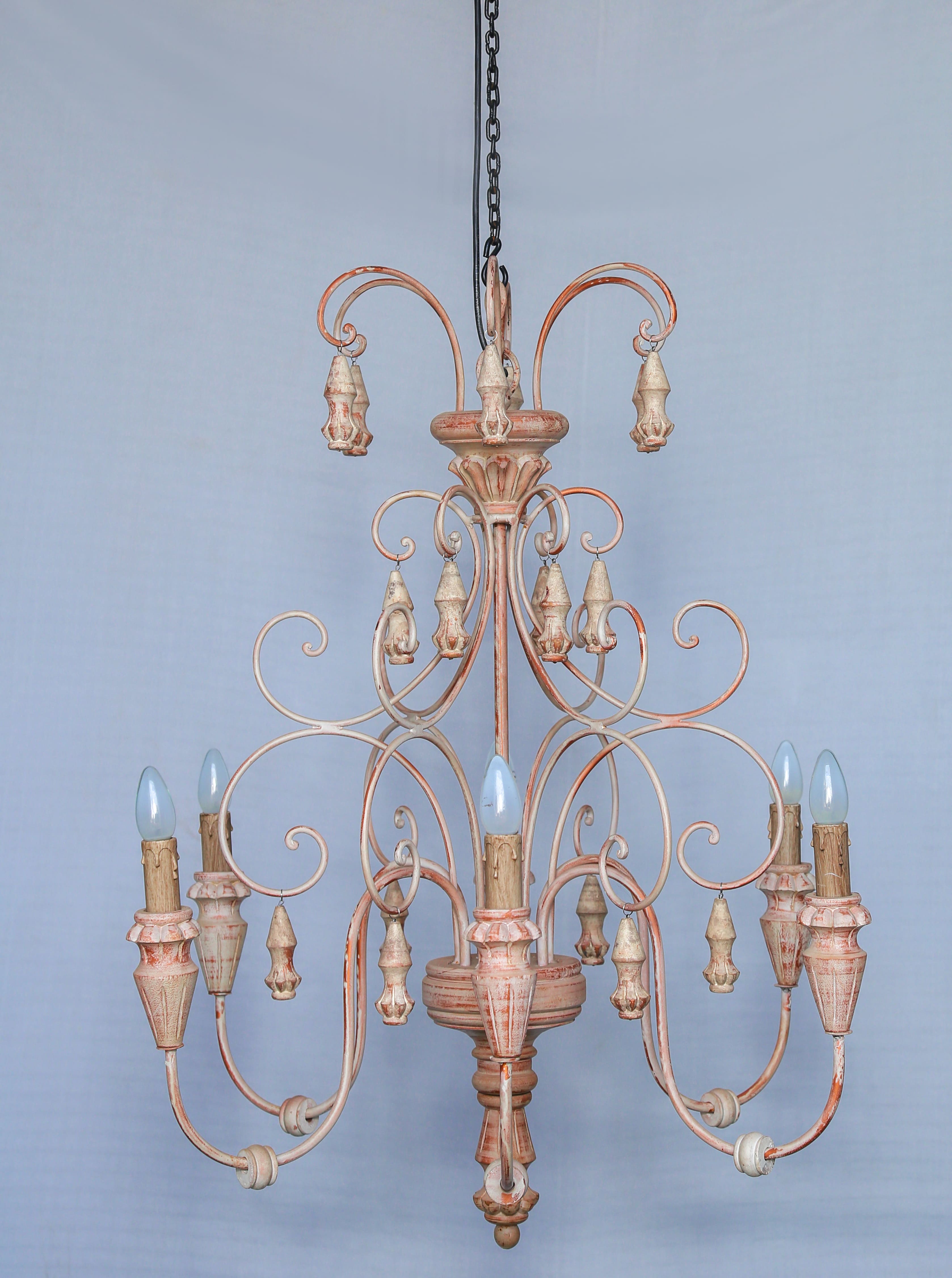 This classic chandelier design is beautifully accentuated by the contrasting bulb holders.This chandelier is sure to induce some drama in an otherwise mundane space